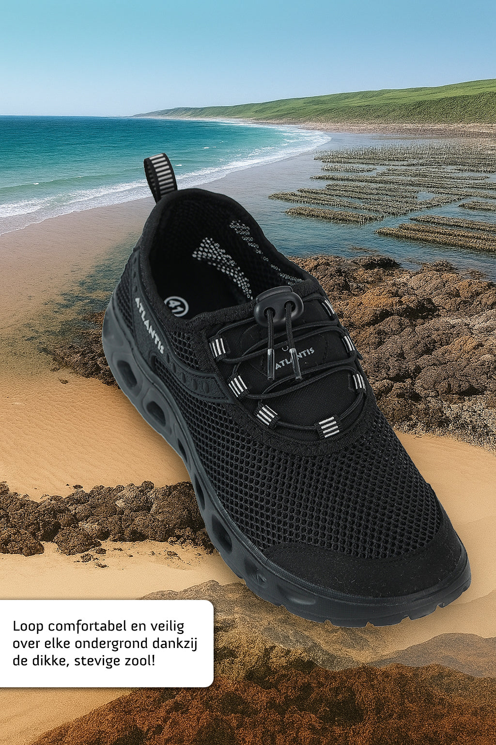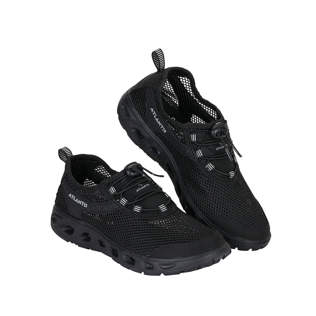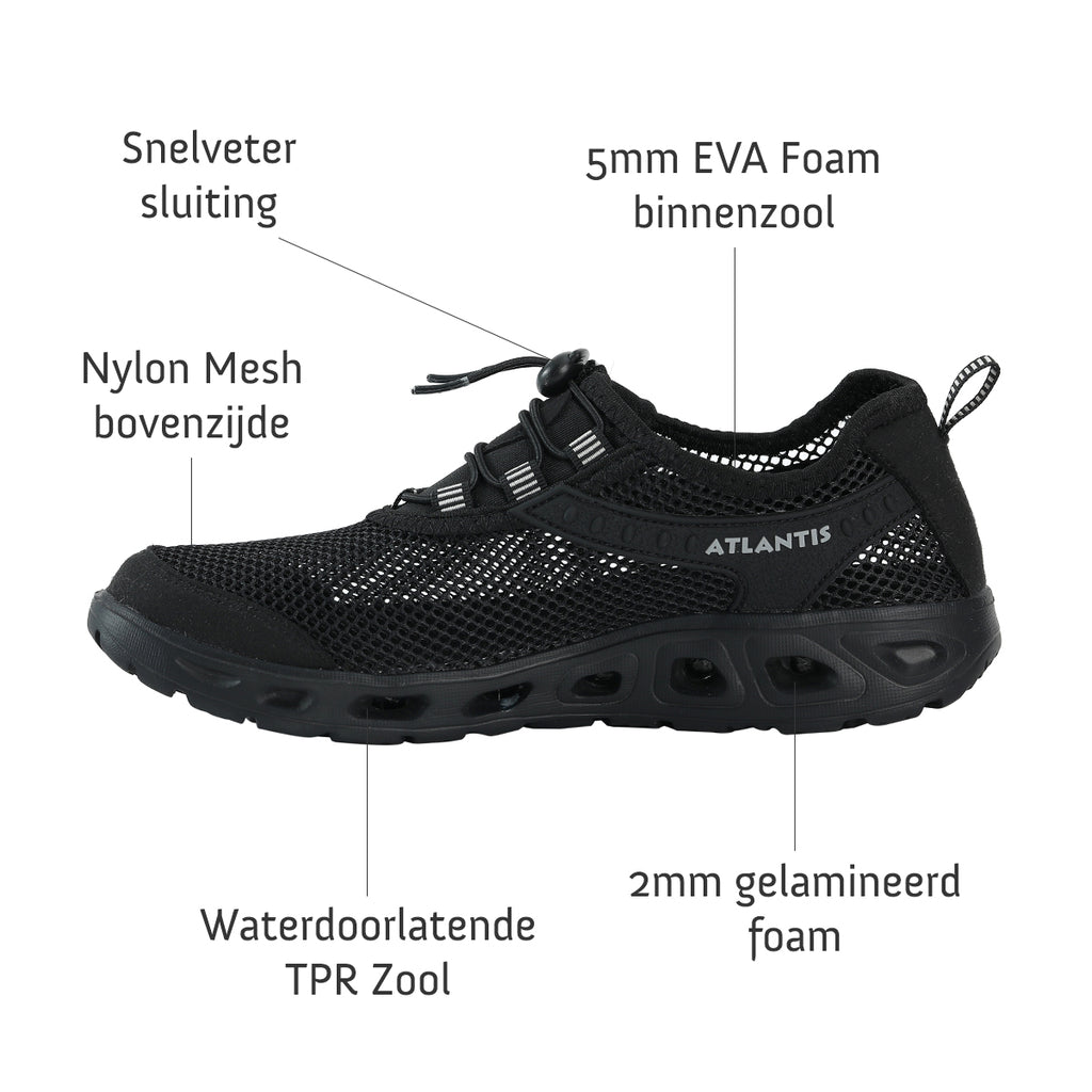 Der Explorer von Atlantis ist Wasserschuh und Outdoorschuh in einem. Diese robusten Wasserschuhe können für zahlreiche Wassersportarten verwendet werden und eignen sich auch hervorragend zum Wandern. Diese leichten Schuhe verfügen über ein stabiles, herausnehmbares Fußbett aus EVA-Schaum und eine geschmeidige, wasserdurchlässige TPR-Sohle aus Gummi. Das Oberteil ist vollständig wasserdurchlässig und besteht aus Nylon und Mesh. Mit dem Schnellschnürverschluss lässt sich der Schuh einfach schließen.