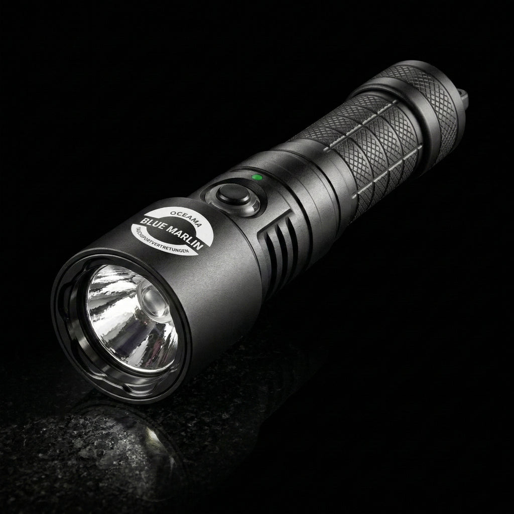 De Marlin lamp van Oceama is een kleine, licht duiklamp met een spot van 6° en een wide-angle halo bundel. Het speciale aan deze duiklamp is dat hij functioneert op een golflengte van 465 nm, wat ideaal is voor het opsporen van fluorescerend onderwaterleven tijdens nachtduiken.