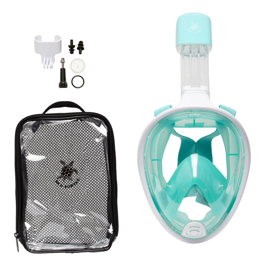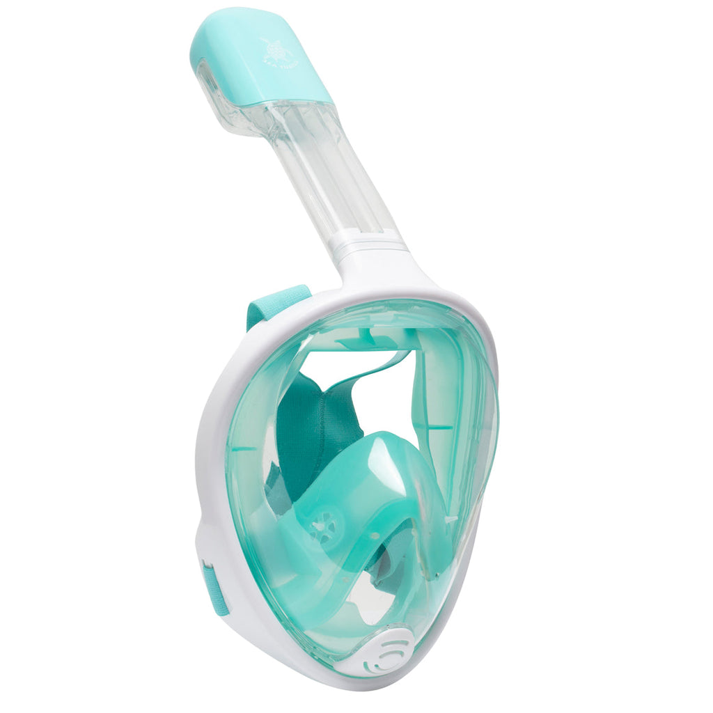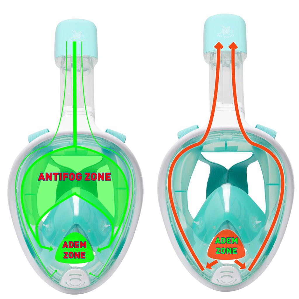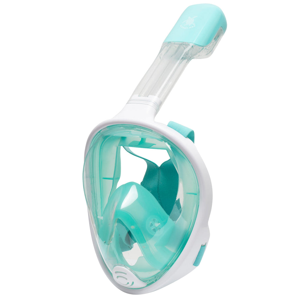 Die Meeresschildkröte Schnorchelmaske eignet sich zum Schnorcheln an der Wasseroberfläche. Das einzigartige Design dieser Vollgesichtsmaske ermöglicht es Ihnen, einfach durch Nase und Mund zu atmen. Wenn Sie unter Wasser gehen, schließt sich die trockene Oberseite und verhindert so, dass Wasser in Ihre Schnorchelmaske eindringt.