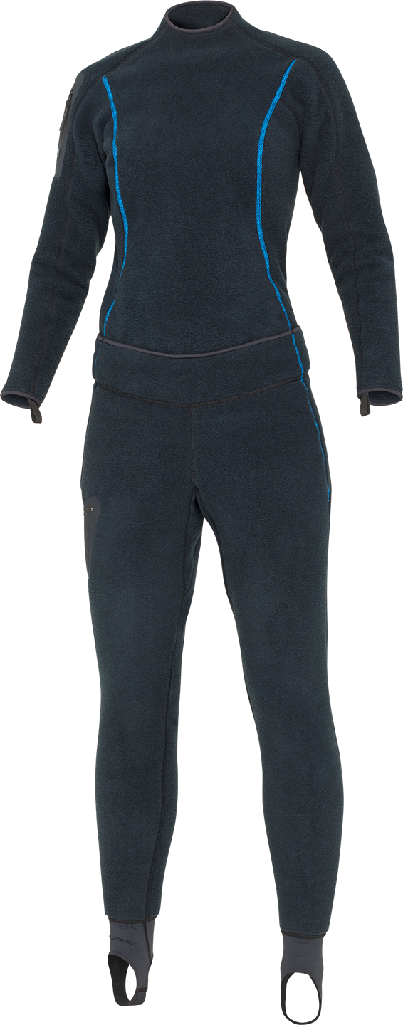- Compressiebestendig fleece. Dit is exclusief ontwikkeld en is de eerste en enige fleecestof die is ontworpen om onder een droogpak te worden gedragen. Compressiebestendig fleece vermindert de behoefte aan “loft” om een thermische barrière te creëren, waardoor een “volumineus” ondergoed wordt geëlimineerd. Het handhaaft ook de isolatiewaarden op veranderende diepten, waardoor de kerntemperatuur van de duiker stabiel blijft.